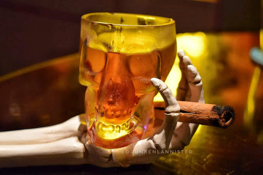 Smoking Skull Manhattan (Must try): A super strong and classic drink based out of bourbon whiskey. Again served in skull head glass with a skeleton hand. The best part was burnt cinnamon stick.