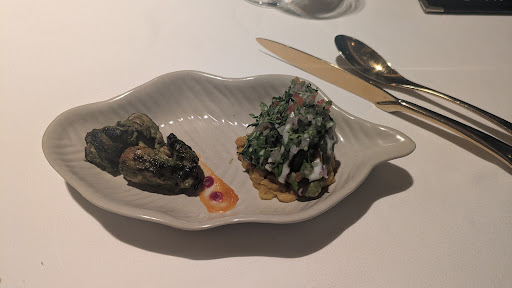 After the culinary hiatus, we were served Mustard Chicken with Tadka Dahi and Tomato Kut. Once more, oneās senses were immediately filled with the multiple flavors and aromas of this dish. A 2015 Sauvignon Blanc from The Broken Fishplate, DāArenberg, McLaren Vale, Australia was poured earlier into a fresh wine glass in anticipation of the arrival of the chicken. Regrettably, there was a problem: when I swirled the Sauvignon Blanc to try to take note of its bouquet, I noticed that there was debris floating. Upon closer inspection, there were by my count six dead flies floating in the wine. While this was very upsetting, I discretely called the server and asked that my glass be replaced and that the bottle be disposed of quickly. The server apologized profusely. Shortly thereafter, a manager came by to apologize as well. It is for this reason that Iām taking away three stars from the rating even if the dishes were for all intents and purposes perfect. Hopefully, the sommelier and staff will better manage their open bottles next time.