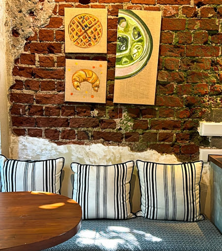 222 Backyard is one of those effortlessly aesthetic cafĆ©s that nails the āearthy eleganceā vibe ā soft beige and warm neutral tones, textured walls, leafy corners, and pops of art that instantly make you slow down. The highlight for me has always been the large, dreamy painting that almost feels like a window into a quiet European courtyard. Thereās also a cosy bookshelf corner, exposed brick walls with food art, and little details (like soft lighting and lush plants) that make it perfect for lingering.