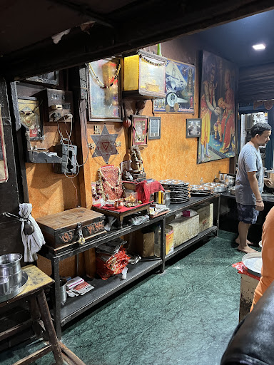 The atmosphere is truly devotional with gods pictures and murti all over the walls.. They provide thali including kadhi,dal, 2/3 seasonal sabji, salad, curd/buttermilk, steamed rice, papad, rabdi, pickles, aamras in summer and hot fulka roti made on koyla chulhaa with desi ghee