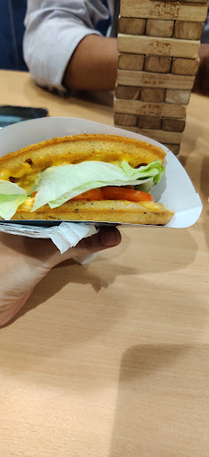 I had the chocolate therapy pancakes my friend orders at home and those were mavellous however when I ordered the same at the store, it didn't taste as good. The waffle sandwich was really good and highlight of our visit. Would definitely recommend. Brownie points for the location, shop and interiors. Staff is polite and clearly asked us to use the dustbin after we were done but many customers didn't and so the place looked shabby. They can maybe place a few more signs urging the customers to clean after themselves. Was not satisfied with the pancakes I had that day, they were too chocolaty, but will definitely go try some more just in case. Will update...