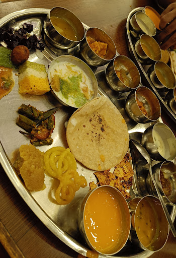Thali restaurant at 330 per person unlimited, such combination has - 2 types of primary bread added Puri. 3 primary sabzi and 2 types of dals. Deserts r basundi and gulab jamun. U get served wid welcome drink n chaas (plain). Some potato starters , idli sandwhich and dahi wada. So menu is long enough. Taste - overall average as u have options u can consider skipping some and favouring some. Pro point to note is serving is small . Bowls r so short that an average male will take it in hand to dig for sabzi or spoon usage. Unlimited - yes indeed u will find this good . Service is good. Fresh rotis makes it a good xperience. Post food - so this is absolutely personal, but our family did xperience bloating for the day. Average tenure in d venue was of 50 minutes . One will note that u eat average, this depends on person and his appetite.