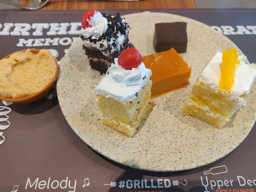 In desserts we had most of the flavours of ice creams whichever you want you can take , chocolate flavour was very hard no one could have it . Plus we had fruit custard (which was superb and very delicious and smooth), chocolate brownie (was ok ok) , strawberry pastry (was smooth , yummy and melting) , pineapple pastry ( was okayish) , gulab jamuns ( which were light , smooth and sweet) .
