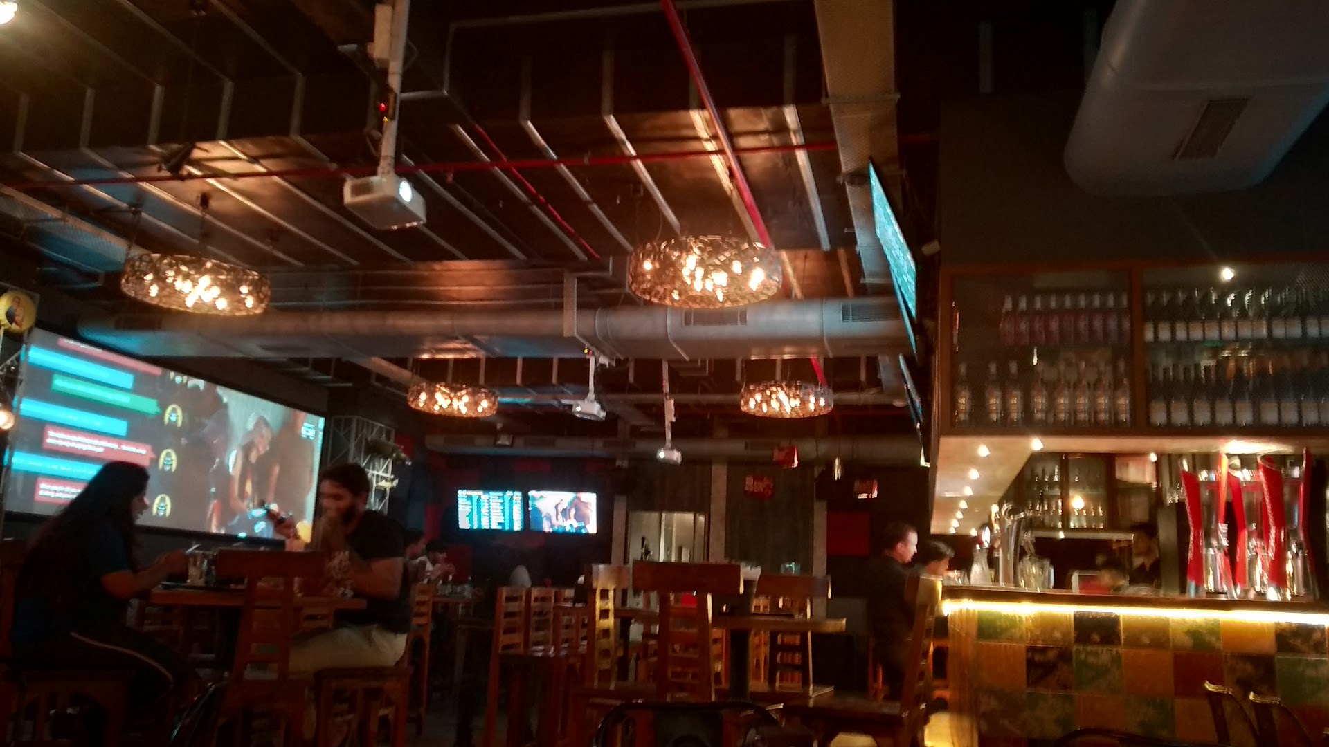 ☸ Ambiance It is pretty spacious. Dim lights with beautiful bar counter. Seating comprises of both high rise and comfy sofas.At the entrance you will see cow boy hats and framed guns. I found that wall very interesting. The highlight was to read out others conversation on screen.