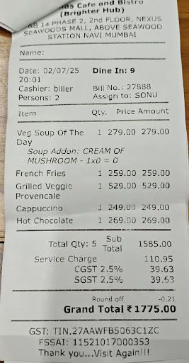 Read moreEdit 1 - Been there a few number of times and see that the service charges are applied by default about 7% of total bill without intimation. I don't mind paying for a good service , but should be mentioned upfront. The service is not that great anyway and I find them too stingy with cutlery. They deliver the food on table but do not attempt or serve if you are a group. With food it is obvious you will need cutlery but time and again I have seen that cutlery needs to be asked each time. Most of the times the staff are busy chatting together and not looking at customers. But without fail they will add the service charges. This is only for delivery of food to your table. That is something bugging. About food it is decent..Avoid the Smokie Brownie. The metal plate is rusted and the Brownie itself is extremely sweet with loads of sugar which spoils the experience.