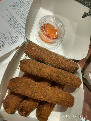 VEG STRIPS ( 4 / 5 ) Mixture of Green Peas, Carrots, Cabbages together in all makes this thing worth trying Since its Deep Fried, health Conscious should avoid this Good way to start of your Hunger