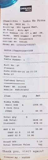 I recently visited Cheelizza and had a great experience! The menu offers a wide variety of creative pizza options, and the cozy atmosphere made it the perfect spot for a casual meal.