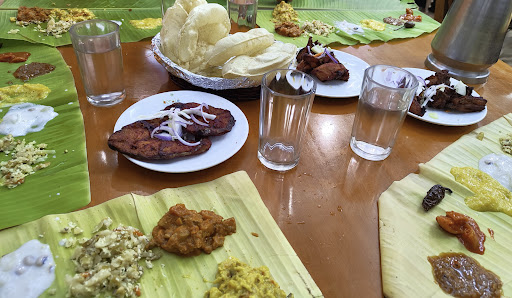 I was craving for sadya (traditional Kerala meals served on a banana leaf with many delicious delicacies) and we found Kerala House in one of the Instagram posts. Though this place is far from home, we decided to visit on a Sunday. Of course I skipped breakfast to have sadya for brunch. After reaching there, we took coupons and started waiting. It was already mentioned in the reviews to expect a good waiting time. And that's really true for Sundays. We waited more than an hour. But I would say that the wait was worth it. Once we got seated, the banana leaf was already laid and then the items started coming. Lime pickle, ginger curry (I'm always a fan of this curry and this was amazing, same taste as my mom prepares), thoran, aviyal, pineapple pachadi, vegetable stew, koottu curry, papad, rice, sambar, moru curry, rasam and payasam. OMG, we loved it. All of this is unlimited, except for papad which is charged @10 if more than one is taken. We also ordered Kerala chicken fry and pomfret fry. Kerala chicken fry was also very tasty, but the pomfret fry was not very great (not bad though it has room for improvement). But as I was there for sadya, I was pretty happy and satisfied. I would recommend this place to everyone. Well there is no separate parking space, so you would need to park on the road side. Our car tyre was puncture when we came back. Not sure if that happened naturally or someone tricked us, as a kid came to us very desperate to fix tyre mentioning that his family runs a tyre fix shop and he knows the process. But we didn't give, changed the tyre ourselves and left. So may be you should be careful while...