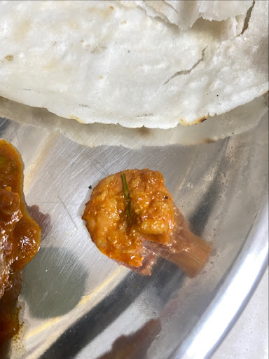 Please check the pictures to see prawns piece in chicken thali and the portion sizes. If you want prawns piece and egg curry in your chicken thali then please order...
