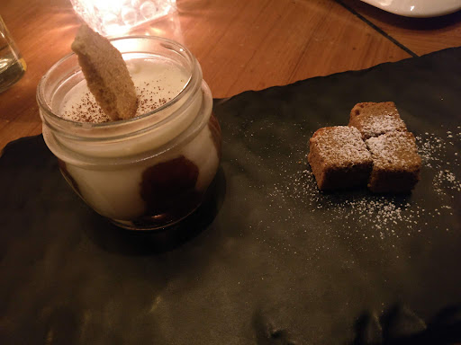 Our night of culinary pleasure ended with the Tiramisu San Gimiano dessert; which was their twist on a classic Tiramisu dessert. The Espresso used was dark in flavouring but balanced with the right amount of sweeting so as to not ruin the coffee rich flavour and the destroy the dish's identity(I don't like when people mess with the taste of coffee). The traditional biscuits used in a Tiramisu have to be soaked in the espresso so as to take on the flavour. Their version simply added a biscuit crumble on top and the crackers in the middle could have been soaked in coffee for a bit longer. I did love the dessert though. My mom also ordered the summer special dessert which was themed around mangoes and included a mango lolly, diced mangoes and a sweetened cream. Too sweet for either of us but the taste was refreshing.