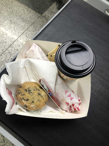 Somewhere near gate 6.... I was given a cardboard cup of tea with a lid. The cup was too squishy and spilled over my hand, boarding card and passport so I went back and politely asked for a cup to put my existing cup in to strengthen it. I was told 'no, the cup is accountable madam'. I was refused a cup several times. After becoming more irritated by this, the manager (?) then patronisingly told me to 'calm down' even though I'd spilled hot tea over me and was only asking for ONE CARDBOARD CUP!! Eventually, they took my tea and poured it into a new cup and put a new lid on. I then pointed out that they had now given me a cup which was 'accountable madam'! Not only that they'd given me a new lid which I hadn't asked for this more 'accountable' products wasted! Serious stupidity by the staff there! No logic and one lost customer - there's a Costa coffee just a bit further along so do yourselves a favour and go...