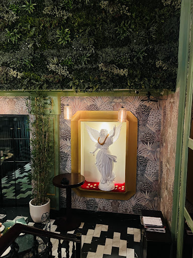 From the moment I stepped inside, I was captivated by the sheer grandeur of the space. The striking contrast of bold black-and-white patterned flooring, coupled with a marble fountain at the entrance, set a welcoming and opulent tone. The wrought iron chairs and lush greenery infused the interiors with a serene yet sophisticated charm, while the vibrant bar area pulsed with high-energy music, instantly elevating the mood.