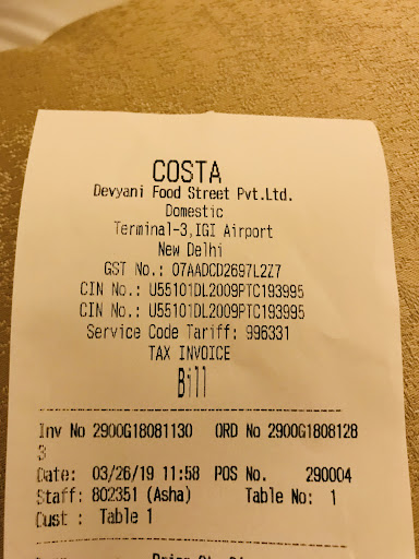 I left my hotel without breakfast and decided to come to costa. I ordered myself a cold caramel iced coffee and a chicken roll. (Which by the way both tasted really good) but the service here is absolutely atrocious and not the standard I would have expected from this chain of coffee shops. When I placed my order I told Monika the server on till my items are for take away, she then proceeded to talk to over to a girl called Asha all in another language and they laughed hysterically. After my chicken roll was heated up under the grill it was slapped down on to a a disposable plate and slid on the counter top. I then repeated I needed the sandwich to go. Monika then passed this information to Asha who rolled her eyes to the ceiling more then once and made it clear she was not impressed having to transfer it in to a paper bag she then started laughing loads while I was waiting. This behavior was disgusting. Iâm a paying customer who just wanted something small before boarding my plane. Out of all the restaurants in this building I choose costa and this is the behavior of the staff. To be honest receiving this service and looking at the unprofessional behavior I wanted to cancel my whole items but this would have been time consuming and more hassle than what itâs worth. All Asha had to do was place the chicken roll / sandwich in to a paper bag. This took literally 4 seconds out of her day to do this. These staff make it so clear they hate their job, or even worse hate their paying customers. I observed their behavior with the people in front and I felt as though anything that was asked of them was a hassle and was made a huge ordeal.