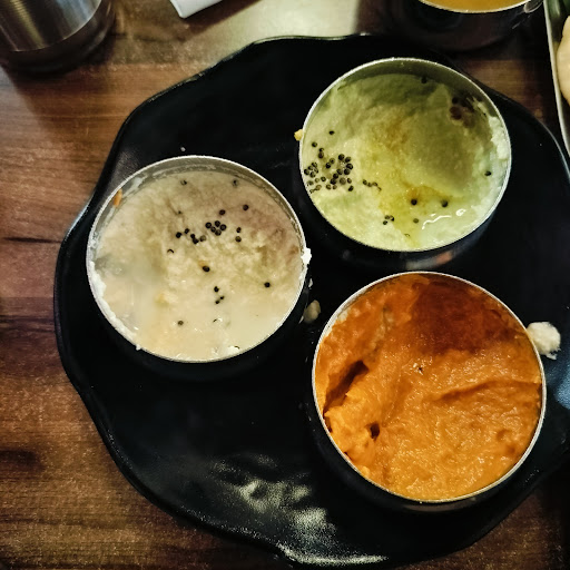 Order a masala dosa, the most authentic and demanding South Indian dish. Believe me you will not be disappointed. I appreciate their South Indian Thali as well, though it sounds costly. Lovely South Indian veggies which taste authentic and different. This is what I am always craving for. They serve just two poories, sometimes I find it less. One can order more poories but each piece comes an exorbitant price of rupees fifty. So I refrain from it. Buttermilk (chaach) served with thali is enough to fill your stomach. Then you have plain rice and a small bowl of lemon rice. The best is a small piece of mixed uttapam. In the last you get a hot coffee in traditional style and that compensates for everything. Overall thali is heavenly. Sometimes I miss extra green vegetables. I wish they give a choice of one extra serving of any two items ( besides that extra katori of sambar) in the thali to satisfy your taste buds.