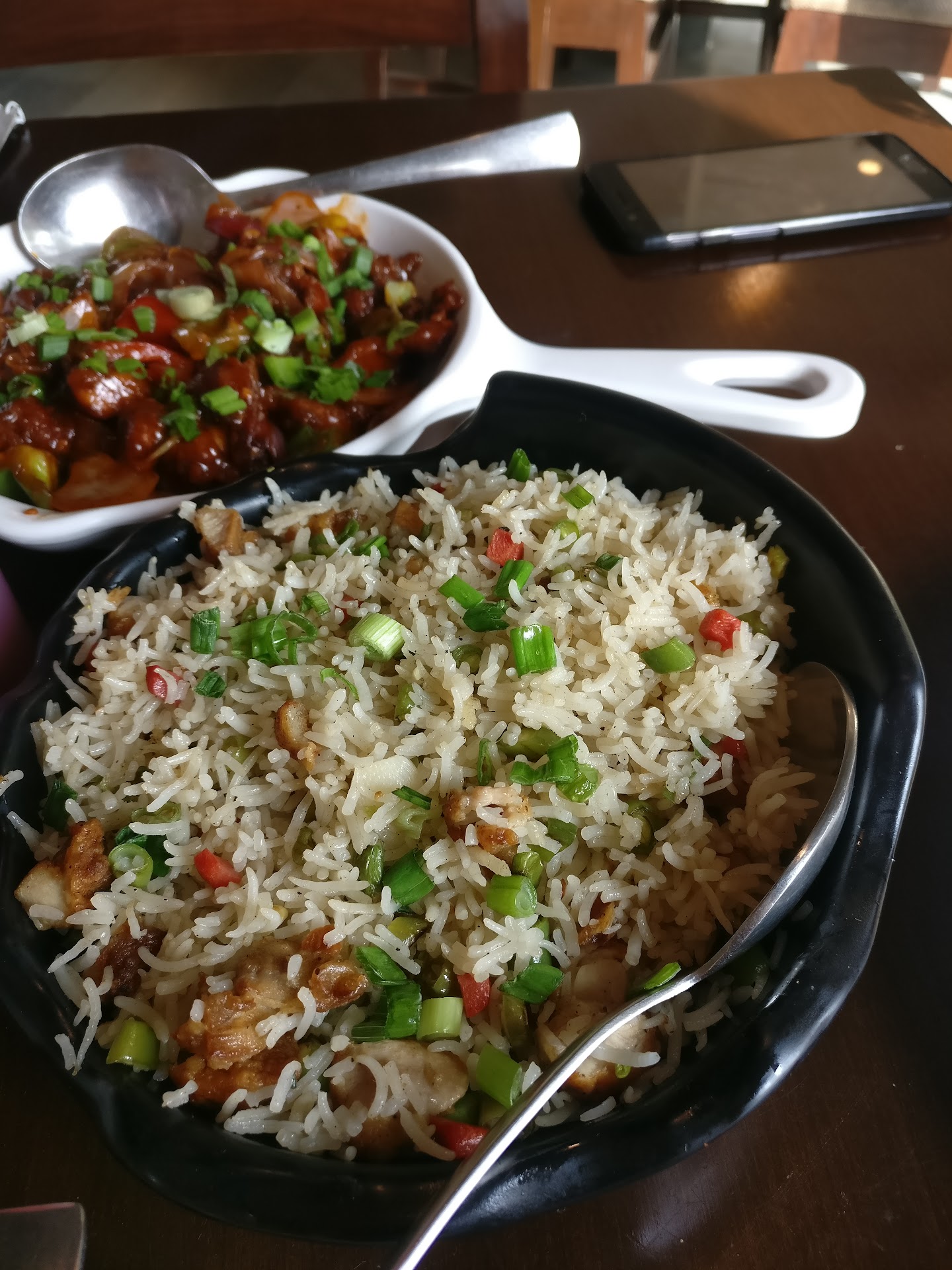 ✓ Chilly chicken done just the way it should be, lots of spring onions, bell peppers and actually morsels of meat.