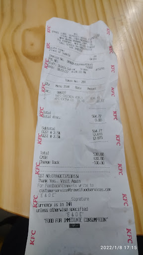 Hi i visited your shop on 8.1.22,. 4 .24 pm i had a good and bad things in airport shop. Cashier was good . this my last meal i like to taste i ordered 4spicy chicken but I received 2 breast spicy pcs and 2 wings normal only. a( 4 pcs means one breast,thigh, wing, drumstick) to my personal experience in other outlet but that to senior cooks sorting out the pcs of personal customer.its feel bad. The sause given with a black pastic thread . when I reported. Cashier informed me it's just a plastic not a human hair.nice reply from staffs.thanks i noticed before and ask for replacement and she gave it but be careful with customer service before serving the meal . because it's may cause health issues to customer when you swollen it . please check once before giving the food to the customer iam little bit disappointed with your rest . thanks to all . please serve your costumer promptly . thanks for...