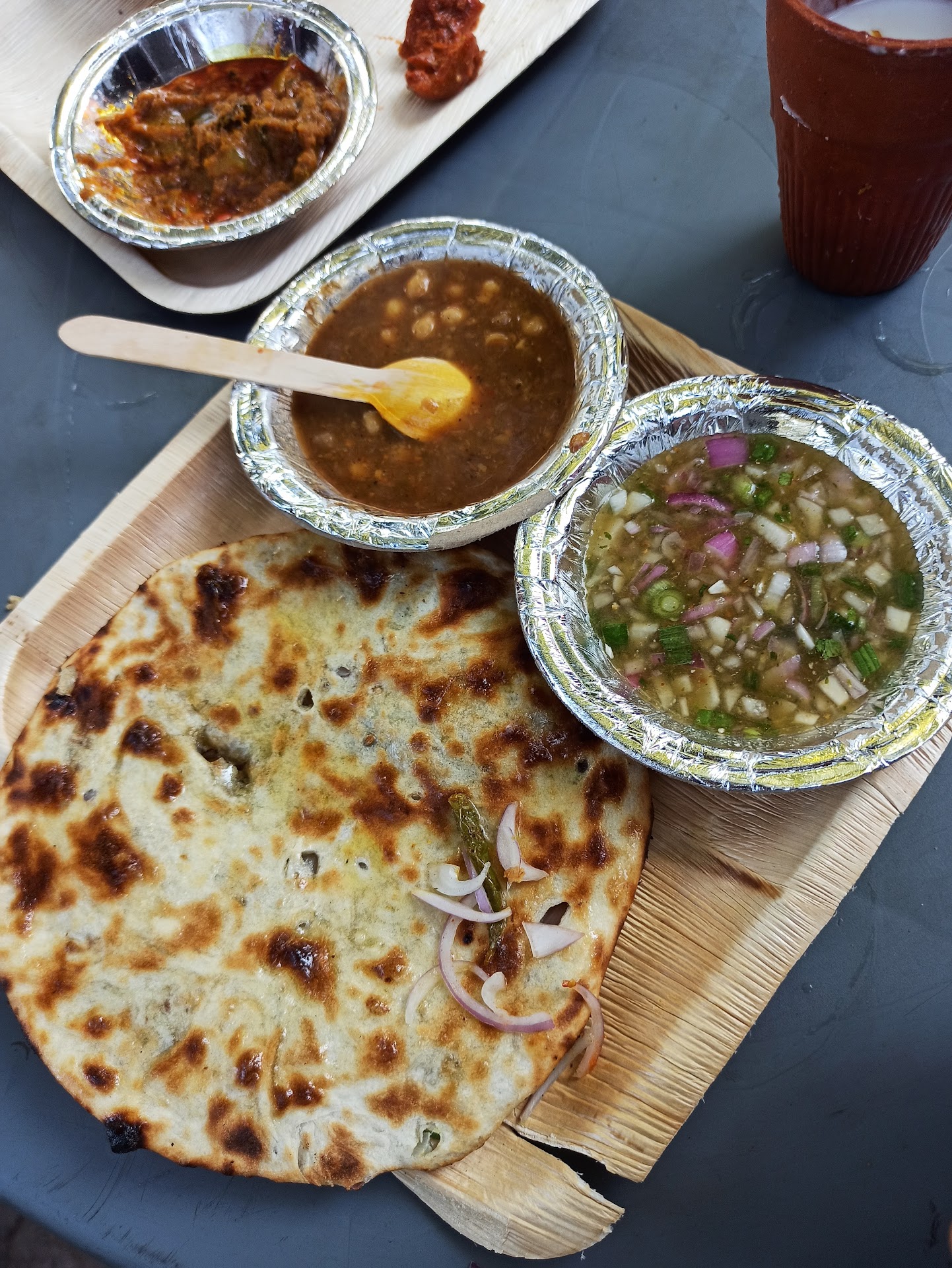 Pros: •The outlet offers variety of thick, crispy and mouth watering kulchas namely Masala,Paneer,Mix etc. even one piece can easily fill you up. •The tangy onion chilly chutney just relishes the experience. •The staff is very friendly especially the English speaking dada who served us chhole and Chutney.