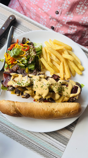 Such a good experience! Went here for just an evening once and for breakfast another time and I've gotta say it's my new favourite. In the evening I had had a vegetable burger and it was delicious. The patty was not the usual potato patty, it was a perfect blend of crunchy and soft. For breakfast I ordered their sweet pancakes with banana and oh it was the BEST decision ever! It was a stack of three pancakes dipped in maple syrup and bananas in between the layers topped with some chocolate sauce. The moment I put my fork and knife to the pancake, I fell in love, so soft and spongey and the first bite I took, oh I still can't get over the pancake and if I write about it more I will have to go and have it again today. We also ordered their spicey cheddar, just requested them to make a little desi, like chilli cheese toast and oh it was delicious. Firstly, I was very impressed that they were happy to make something not on the menu and secondly, THAT delicious. Also my non vegetarian had their blue door special breakfast and he absolutely enjoyed it as well since he's a fan of English breakfast, although he complained of the sausage being tasteless but the bacon was perfect. Their sangria is also a must try. So juicy and sweet and a delight in the mouth. And their mocha goes on the few favourites.