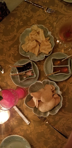 We ordered food, while waiting for food we were served complimentary munchies while waiting for main course. Person who served us was great and very perceptive about our needs. Kudos to him. But unfortunately food was not that great. Just above average, with oily base, I have eaten Thai food in Manhattan/New York city (not in Thailand though) multiple places but flavour was quite different what we encountered here. Good but something maybe cocunut milk was missing. But overall if one wants to have a lovely experience, definitely go there, food was not as bad as it may sound, but my expectations were but high as we paid good price for that. We were attended well to with complimentary SWEET dessert (photo attached), yes they served it free of To summarize, people were very nice, atmosphere was great and only downside was just above average food.
