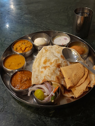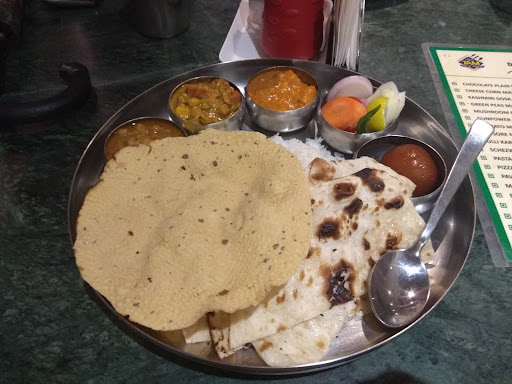 The restaurant has a varied menu with options like veg soups, starters such as veg kababs, and a wide range of vegetarian main courses that include Indian breads and curry dishes. Their 7 AM special thali, priced at just ₹190, is definitely worth trying for anyone who enjoys a good variety in their meal.