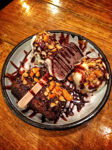 I will describe the dessert I had here rather than name it. Gooey Chocolate Brownie with all time favourite vanilla ice cream and crisp choco bar. It takes you to heaven straight ( for the time it...