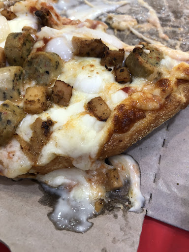 The order was for Jamaican chicken medium cheese burst. Instead I got a pizza with 1 type of chicken and 3 colors of capsicum and cheese burst. I gave the store person the pizza back and told that this wasn’t the correct pizza. He gave another one with correct toppings but no cheese burst. Instead cheese was just poured over it like water. The pizza wasn’t baked properly and the cheese was liquidy throughout the time I and my friend tried to eat. We ended up eating it since it was already 10:45 pm and we couldn’t wait anymore. This wasn’t even cheese burst. The sauce wasn’t uniformly spread and was in 2 slices only. As it was very late in the night i didn’t want to spend time arguing with the store people. Very poor experience overall. Most disappointed at this store in Little World...