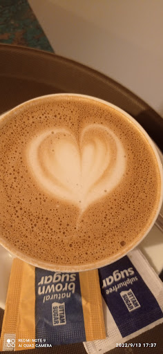 Great cafe in Kharghar....even though it's.jear a bustling area in Kharghar as soon as you step in the ambience and the vibe makes you calm .... Also the barista and other staff are extremely well mannered and helpful . We had Irish hot chocolate , capuccino , red cookies , lime curd croissant and pesto ham croissant sandwich.. liked all of them ..the croissant items lime curd and sandwich were our favourites.... Irish chocolate was a bit too sweet to our liking ( not by too much ...but will rate it 95 instead of 100 because of that ) .....and probably will rate 200 out of 100 for the people there ...overall a nice...
