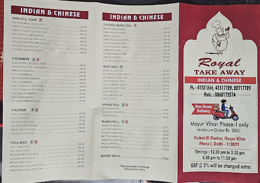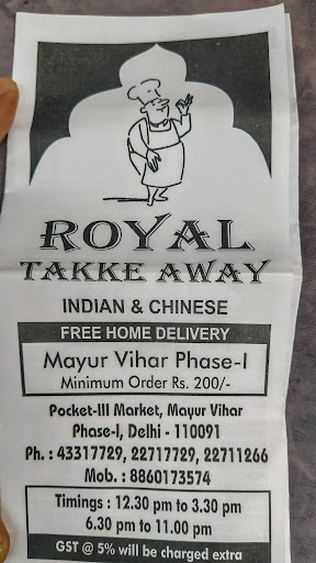 Royal take away is one of the oldest, small outlet in Mayur vihar main road near metro station, where you can find one of the best makhani dal. The taste of dal is very good. The rating given is just for the same.they have increased the quantity so one portion is sufficient for 3-4people if ordered along with other dish. I have also tried chilli garlic noodles(it's actually super chilly ,and order only if you like spicy food), all other veg dishes like kadahi paneer, mushroom do pyaza are avg and regular taste. Among breads they offer decent garlic nan, but doesn't taste good if ordered at home. Overall exp is average..but yeh Makhaani dal ek baar khani...
