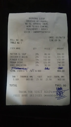Read moreWe visited Banana Leaf barbecue restaurant in April 2023 for dinner. The place was almost full but we managed to get a seat. We checked the menu and asked for a biriyani to be informed it's not available. Soups also weren't available and the list continued. We just ordered Shawarma and some juices. In a few minutes we noticed biriyani being served to another table. Might be the case that it was the last one but still was disappointing. The shawarmas were served quickly and were good, but the watermelon juice took forever. We had finished our meal and waited for around 10 more minutes for the juice. The bill took even more time. Overall the food was okay, but the service and options of food is very disheartening. The washrooms and handwash areas were clean and well kept. The prices...