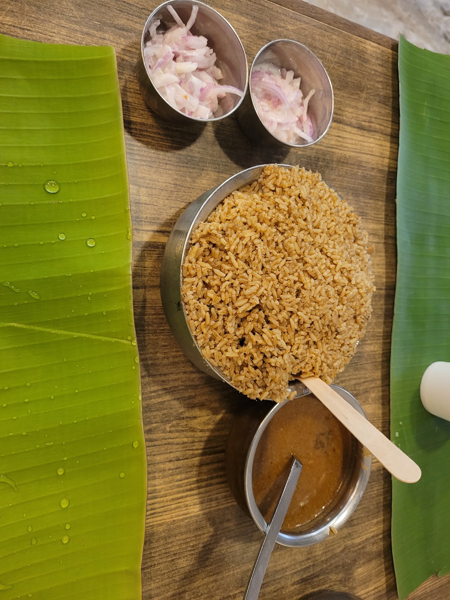 My suggestion? Go for the plain biryani rice rather than splurging on mutton or chicken biryani. It’s more economical, and frankly, the biryani itself is just average. The rasam and curd rice, on the other hand, are decent.