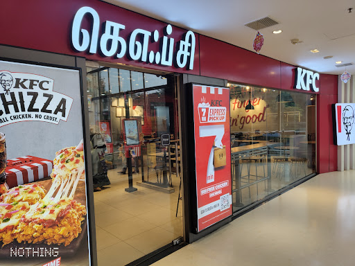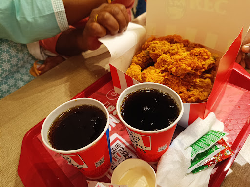Read moreOur visit to this particular KFC was quite disappointing especially with regard to the cleanliness. We went in the evening and it was not crowded but the floors were not swept and there were hardly a couple of tables that were clean. Most had crumbs, spilled drops of drinks, and boxes and cups from previous customers. Lots of flies too. Even the floor leading into the kitchen was greasy looking. In the 1/2 hour that we were there no one came to clear away any tables. The servers had lots of smiles between themselves but we were met with sullen and disinterested faces. We have been to many KFC outlets and experienced great tasting food, but here the chicken pieces too were overly greasy and drenched with oil. Located in the only mall of Pondy, this KFC can take some effort to improve its overall service...