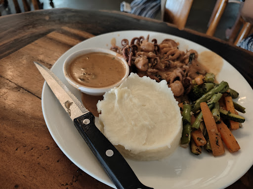 We tried the winter breezer which is a mocktail. It was good enough, but could have packed more punch, tasted a bit diluted. To be a bit adventurous we tried the Champignons Farcis Au Beurre D'Escargot which was mushrooms stuffed with a mince of snails, shallots and garlic. The texture was crunchy, not very chewy, and the cheese on top complimented it well. Not an extraordinary dish though, but if you'd like to try something new, go ahead.
