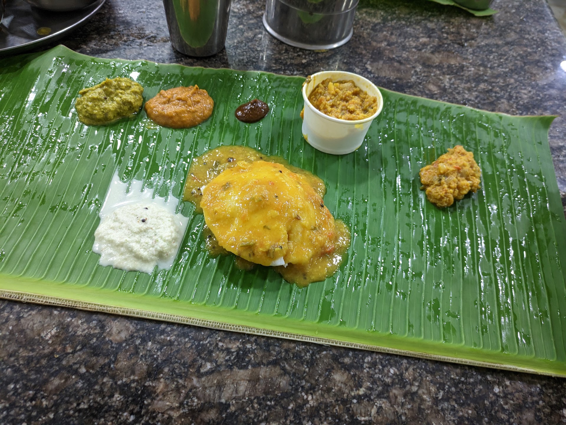 You get served basic lunch on banana leaf. While you are eating, don't be surprised if the staff keep large buckets of rice or sambhar next to your plate!!