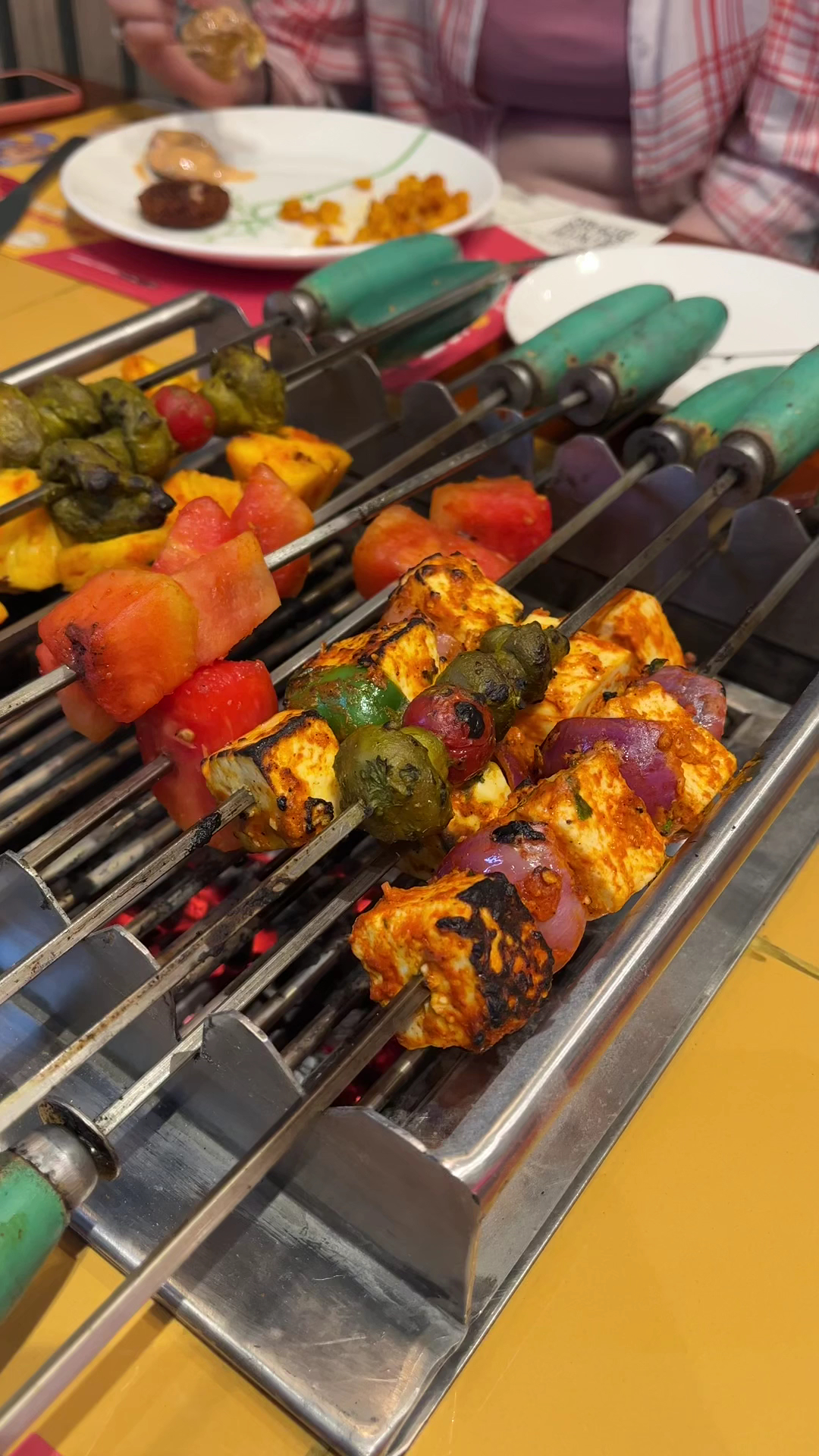 The buffet spread included a wide range of starters, main course and desserts. We got to grill our own meat and veggies on the table, which was fun and interactive. The starters were mouth-watering, especially the grilled prawns, chicken tikka and paneer tikka, and barbecue pineapple. The main course had a variety of dishes, such as biryani, dal makhani, butter chicken and naan, and this is one of the very few buffet places where the main course is just as tasty as the starters. The desserts were also amazing, with options like gulab jamun, ice cream and brownie. However the dessert options felt a bit limited compared to rest of the spread.