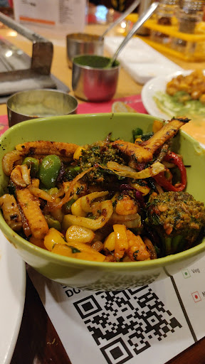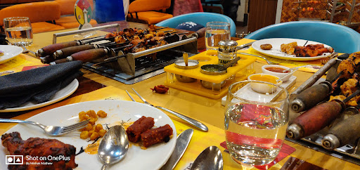 After I got a table for 35 mins approx It took them. To. Give me my first tandoor starter and coal. On the table... There are so many items we were not served what we got was Tandoor chicken, fish and prawns, one single leg peice and few carnels of crispy corns. Waiting for the food to start killed our hunger and looking at the service and the count of items served another challenge for your team.