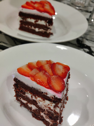 Desserts *Red Velvet Falooda, a delicious red velvet cake was served with a custard. The cake was a show stealer!