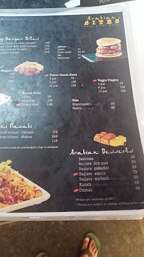 Read moreArabian Bites is a restaurant located in Pune, Maharashtra, India, that specializes in serving Arabian and Middle Eastern cuisine. Some popular dishes on the menu might include hummus, falafel, kebabs, shawarma, and a variety of rice and meat dishes. It is not uncommon for restaurants like this to also offer a selection of desserts like baklava and sweet pastries. The restaurant may also serve a range of drinks, including coffee, tea, and fresh juices. If you are in Pune and looking for a place to try some delicious and authentic Arabian food, you might consider visiting Arabian Bites.