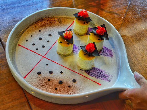 The Papaya and Orange Pudding too was presented beautifully with a skewer of fruit scoops as accompaniment. Nice sweet and tangy flavors of the fruits and the sticky rice pudding,...