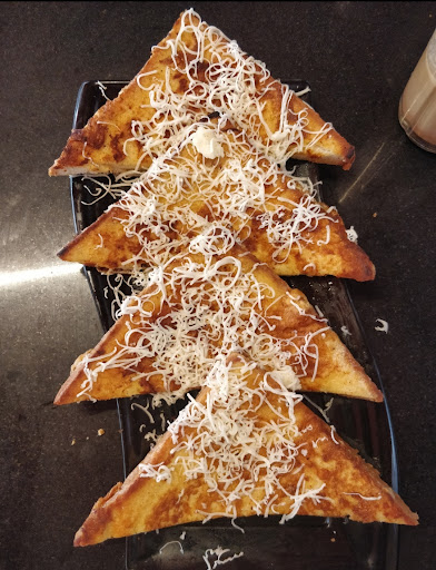 FRENCH TOAST The french toast was just okay. As only salt was used in the egg preparation, it tasted pretty bland. Chillies and onions to it would have done wonders.