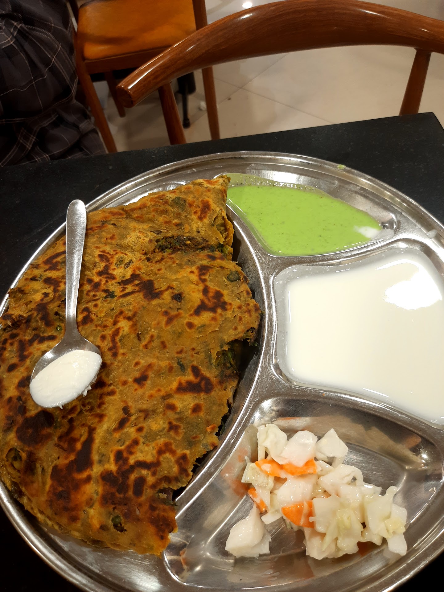 Read moreChaitanya paratha house have more than 5-6 branches all over the pune. I visited the viman nagar branch. Its located backside the phoenix mall. Its always a crowdy area. This is located on main raod. Its not a all time crowdy place because there are so many good places like pubs cafes available around the place. its special for paratha but you can get normal food along with chineese here. You can get aloo, methi, gobi paratha here with personalisation. You can combine it with paneer, onion, tomatos or combine both aloo and methi paranthas. All parathas served here with a green chatney and plain curd (dahi). As its a paratha house you can get lassi here with very good quality. They haveany flavours of lassi here like strawberry and mango. Plain lassi. Fruit custurd is also availanbel here. And seasonally gajar halwa is in their desert menue. Overall they have good desert options. One person have a complete meal along with desert have around ₹200 rupees cost. A very good option. Must try. Must visit. Sitting arrangement is so common. And serving plates are also common. It must be stylist as compare to the location of place. But its ok. Taste...