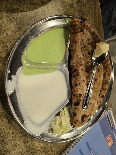 Inside, the restaurant has a warm and welcoming atmosphere, with friendly staff ready to assist with any questions. The menu is extensive and offers a wide range of parathas, from traditional options like aloo and gobi. All of the parathas are made fresh to order, so you can be sure you're getting a delicious and authentic meal.