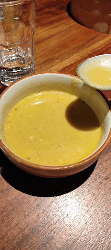 Roasted Pumpkin Soup This velvety soup is a warm hug in a bowl. Made with slow-roasted pumpkin, it boasts a deep, caramelized sweetness with a touch of cream for richness. A drizzle of herb-infused oil and layers of texture and flavor, making it the perfect start to your meal.