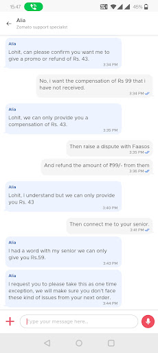 Read moreI ordered veg roll from them via swiggy where they delivered a non veg roll in a veg packing. I’m a vegetarian and i was almost going to eat it but thankfully i checked the filling before eating. No surprise Swiggy being so unreasonable and asking me to send email as they’re blind enough to verify from the photo i shared that the roll was non veg and fassos is not...