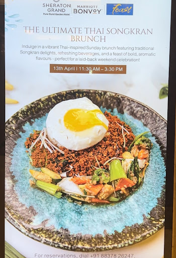 Read moreFit for the kings! I had wanted to go for a Sunday brunch since a long time and Feast was the perfect answer to my cravings! Set inside the Sheraton hotel, Pune, the surroundings are plush and the restaurant looks exquisite. The outer section has a kids area duly set up with bouncy castle, art and craft counter, zenga and many other games, making it the perfect afternoon for kids in tow! The buffet is expansive featuring a multi- cuisine spread which is tailored as per the festivals. I visited on Gudi Padwa and enjoyed a great spread of Puran Poli, Shrikhand puri, matki chi usal, batachi chi bhaji, katachi amti, masale bhat, alu chi wadi, kothimbir wadi, bakarwadi, papads along with other global dishes. The live counters came alive with Chinese wok and Italian pastas while the hand cart at the entrance promised to tickle my taste buds with pani puri and ragda pattice. Traditional drinks like solkadhi and kokum sarbat were a perfect answer to the scorching sun. You can also order mocktails and cold coffee. Salad counter included cous cous salad coupled with arabic dips like hummus, baba ghanoush, tahini and labbneh. Keeping with the ethos of the festival, the non-vegetarian dishes were arranged away from the main fare. For the mains, I tucked into a delectable portion of chicken biryani and mutton roganjosh and chicken tikka masala. The USP of this buffet is the dessert counter , which is always neatly arranged with the choicest of desserts from creamy cakes to decadent chocolate soufflÊs, gulab jamun and a plethora of ice creams. While my son enjoyed colouring and craft at the kids section, I sat back and relished this delicious fare to the company of live music! As dulcet sounds of the piano fell on my ear, I was sure convinced that it was indeed a fitting end to my weekend!
