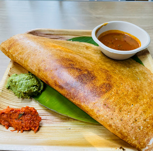 Gatti Chutney's golden yellow, fluffy masala dosa is one of their best dishes. You get to taste the non oily potato onion masala with the glistening dosa.
