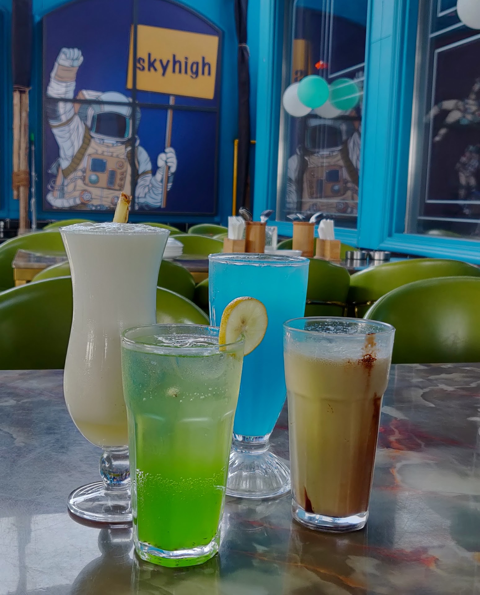 SKY HIGH This place is located in kharadi which is present on the silent lane. It is basically on the 9th floor of Global Business Hub. As you enter this place you see a huge seating place with vibrant and colorful environment. Really as you enter the place you get a very good vibes. Ambience here is soo good and pretty superb. You can visit this place with your friends and party here. They also have a dance floor which is quite big and comfortable .The Bar section is designed so good, you can actually feel the vibe while having your drinks. Also they have good character designs on the wall near the bar section. The staff here is cooperative and polite and the service is also good and proper. Also we enjoyed the food and drinks also .So coming to the foods and drinks we had kiwi drink , cold coffee, Blue breeze, Pina colada, strawberry delight and cola. Every drink was amazing to its taste. Best place to have best drinks. Then we turned on our starters and had mushroom stuffed with briami which basically was mushroom stuffed with bell pepper and zucchini topped with spicy tomato sauce and aioli. It was soo good at taste and it was eye catchy as the presentation of this dish was really good. It costed around 240/- which was little high as per the quantity but the taste is satisfying. Panner Pepper Parsley Tikka which was well marinated and it had a nice blended flavour of parsley and pepper with smoky aroma. Also we had Mexican Grilled Prawns which was seriously soo good. It was basically served with mexican sauce and mayonaise which was really a great combination. For mains firstly we had Thai Style Cottage Cheese Sizzler which was amazing which had good portion of rice and fries and the thai style paneer steak was properly cooked. Also we had Veg Burmese Khow Suey which was good in quantity and quality which was a complete meal in itself and it was served in generous quantity of burnt garlic noodles and platter of toppings. Actually it lacked the proper taste of coconut flavour and also the gravy was too thick. And atlast we had the desserts. Sizzling brownie with vanilla ice cream which was very good at taste. There are very few places where you could get good taste of sizzling brownie. Also we had Tres Leches with Dulce Mousse which was so soft and the blueberry syrup was perfectly spreaded over it which gave it a awesome taste. Highly recommended to try this. Food: 5/5 Quality :5/5 Ambience: 5/5 Food Presentation: 5/5 Value for Money:...