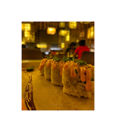 FOOD: For most of the time I have been to this place, 2 signature dishes have always made to my table; Sushi and Dim-sums. I absolutely love their Sushi. This time, I have tried more diversified menu as they have recently added new food items to their menu. Letās start with the Sushi. I have tried āCream Cheese Avocado Rollā and āBlue Rice Salmon Surprise Rollā and without any doubt I liked Blue Rice Salmon more than the cream cheese avocado one because simply Sushi is about fish and rice and somehow I was never convinced with the idea of veg sushi. Not that Cream Cheese Avocado was bad but my tastebuds went ahead with Salmon, because Everytime I hear Salmon, I hear sushi with it š This Sushi was purple in Color which was quite fancy, and taste wise it had mild flavours which is how it should have been. I totally loved it. After this I have decided to try something different and ended up trying their Tortellinis. For all those who donāt know what tortellini, it is a type of pasta which looks like sea shell. But this werenāt regular Tortellinis, they were moreover fusion ones as mix of Italian and Asian food. I had āSmoked Water Chestnutā and āChicken- Shrimpā Tortellini. Again my vote goes to Chicken Shrimp as Asian food offers more variety in non veg. Chicken and Shrimp cooked in perfection and wrapped/ filled in Tortellini, steamed and served perfectly. I liked it. Then comes to their one of the dishes which Iām not really fond of- BAO. Twice I have tried their Baos but didnāt like the overall texture, taste as I have had better ones. So wouldnāt recommend those. Coming on to their main course, I have tried my regular which was Black Rice, Chicken Burmese Curry and Shiitake Mushroom on the side. All 3 were flavoursome, enriched with flavours and made my tummy feel good by tantalising my tastebuds. And lastly finished my meal with a dessert called āChocolate Domeā which was more like our classic chocolate brownie with Vanilla icecream but covered with a dome made of chocolate which melted right after they poured hot chocolate on top of it. It was delicious and filling.