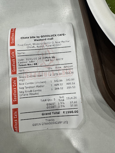 Read moreWhile at the food court - WESTEND mall, Aundh... Came across this place by Cafe Goodluck... Of course there was no thinking twice about this... Had to order . I have been a Goodluck fan for about 2 decades.. Ordered for a Bun masala omlette with cheese and chicken sausages... And the series of disappointments started.. the order was declined for they did not have sausages available... Ok. So ordered for a Bun masala omlette + mutton Biryani for I remembered the cafe's biryanis to be awesome. The bum omlette was nice... The Biryani was served in a disposable plate which had compartments for lime+onions and gravy. The Biryani compartment was extremely compact.. could not move a grain to mix the rice and masala... Had to ask for another plate after trying for a few minutes... The Biryani was a little over spicy.. but we'll flavoured... I must say... Cafe Goodluck food cannot ever taste the same anywhere else but the Deccan chowk, legendary...