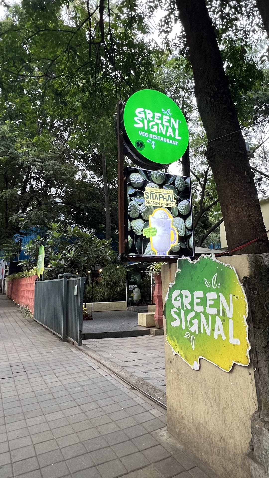 Read moreVisited here multiple times, will tell you reason why we went to this place despite deciding to go some other place. Will tell you the reason at the end😏. Good quality family lunch/dinner location. Nice ambience, well maintained green spacing. One memorable dessert I had was Sizzling Hot Brownie. Had ordered this twice, had a delightful experience but the second time the pineapple got slightly too roasted. For main course, if 'green signal special' bhaji is available in green gravy - it's must order. Didn't enjoy brown gravy as much as the green one, just order some paneer or mix veg varient over that. Momos are great, tho paneer kurkure momos was lil bland, veg momos are great. Tried the seasonal mango dessert --- wish that didn't had the yellow looking kassata like mango ice-cream, but it had real mango pieces- a saving grace... Achilles Heel of this restaurant is very less quantity of servings, nothing was served enough to fill your stomach, but taste was enough to fill your heart. I had ordered Italian once, not bad... Personal bias I don't like Italian food much. Speghetti was okish, eat it up when hot tho. White sauce and pink sauce pasta are bearable for me; had just one bite- can't really pass a judgement. Also I've tried Pav bajhi was 7/10, coz mom makes it the best right🙃. Ok so here is the reason for multiple visits: Visited here multiple times, coz my sister's can't eat satvik maharashtrian ahar, ykwim (check map)🌅, while my family has to bend to her will.... Also we like green...