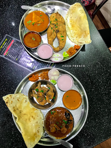 Surmai (King Fish) Thali: Features a sizable piece of fried surmai, marinated with homemade spices, coated in rawa (semolina), and fried to perfection. Accompanied by fish curry, solkadhi (a refreshing coconut milk drink), sukkat chutney (dried fish chutney), choice of chapati or tandalachi bhakri (rice-flour flatbread), and rice.